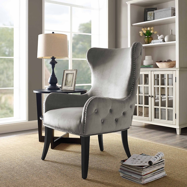 Gray Tufted Accent Chair With Nailhead Trim Kirklands